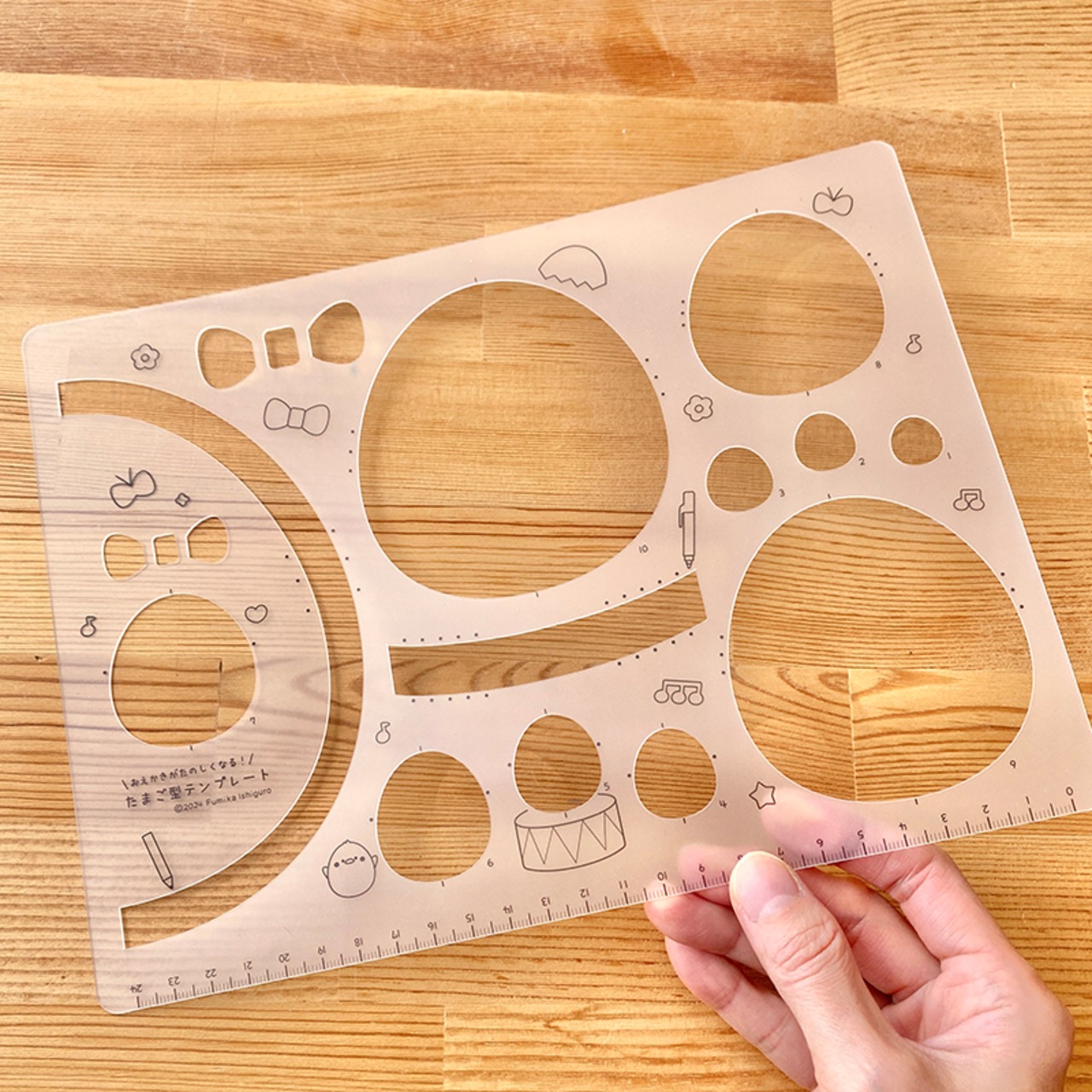 「たまご」のかたちが描けるテンプレートが新発売!1.5cmほどの小さなものから、16cmほどの大きなものまで、12サイズの「たまご」が描けるので、お絵描きや工作など幅広くご活用いただけます。