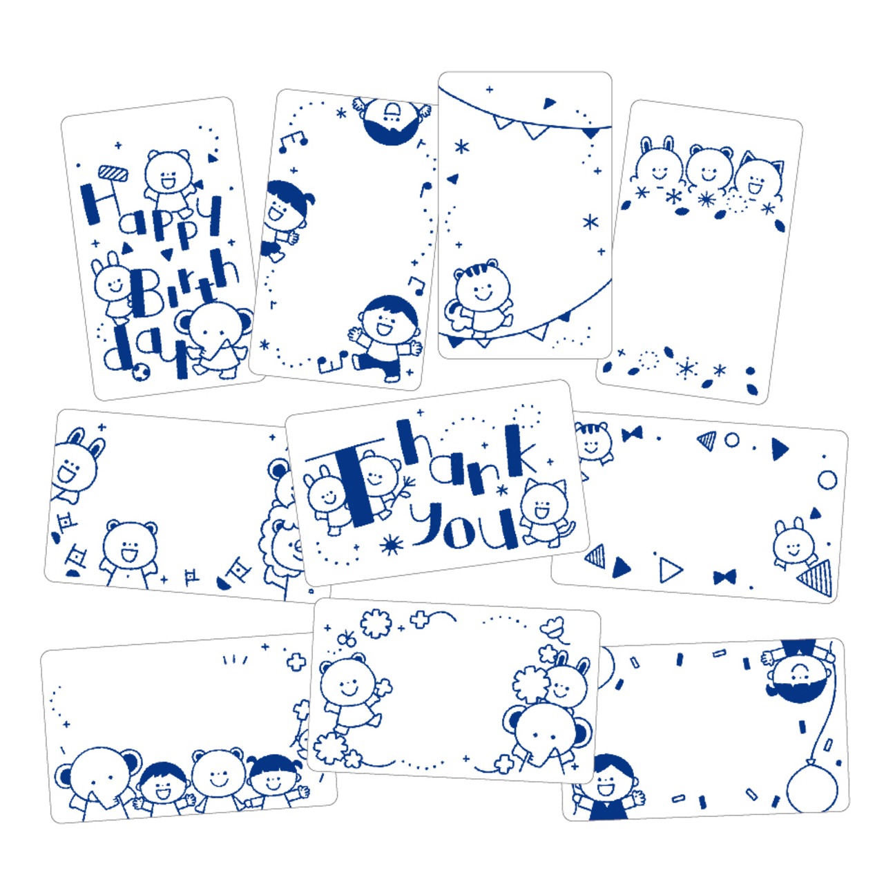 (1セットに含まれる10枚のカードは、すべて違ったイラストです。)