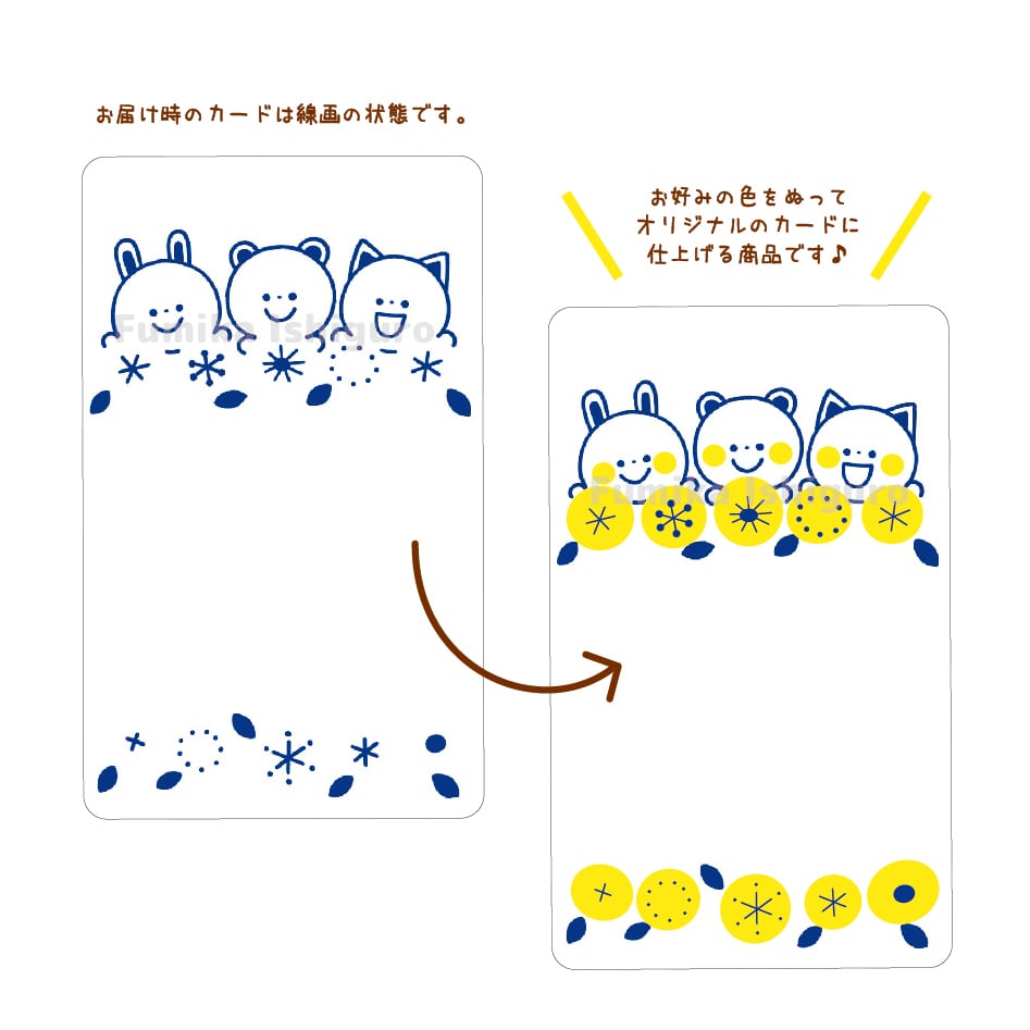 お好みの色を塗って、オリジナルのメッセージカードに仕上げて楽しんでいただく商品です。